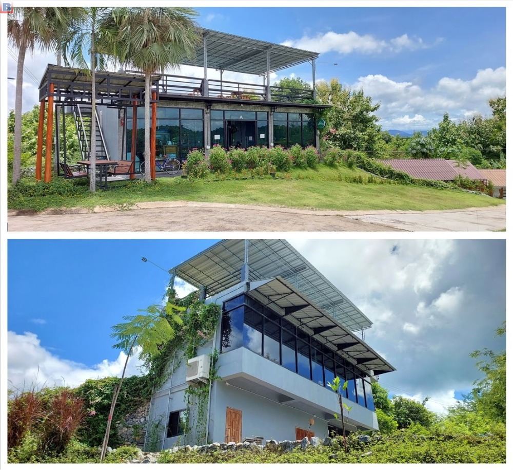 A 2-storey building, the upper part is a big living room with coffee bar 78 sqm. with 1 air conditioner, the lower part is 60 sqm. for a storage for garden equipments and others, toilets and bath with 2 water heaters and a staff bedroom.